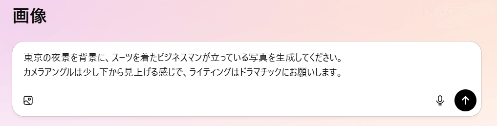 プロンプトを具体的にするコツとしては、以下の要素を盛り込むと、意図が伝わりやすくなります!