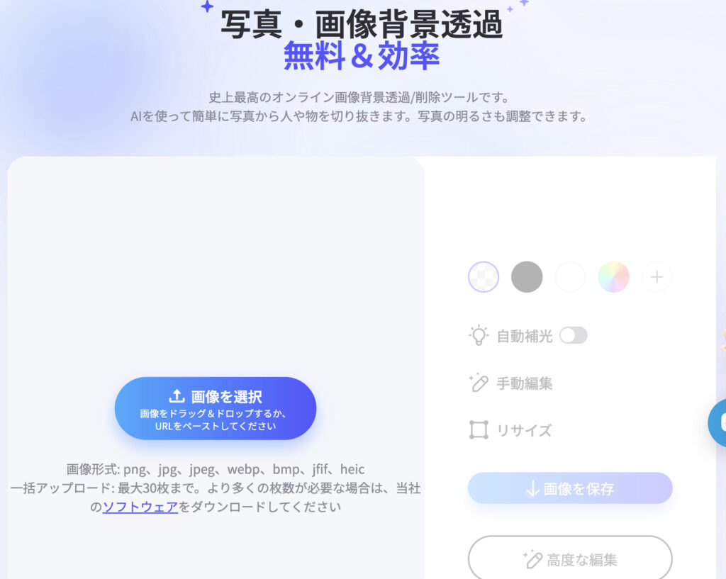 基本は「アップロード→自動処理→必要なら微調整→ダウンロード」という流れです。