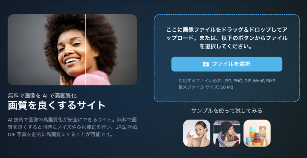 SNS用の素材や、古い写真、スクショ画像など「ちょっと粗いな」と感じるときに効果が出やすい機能です。
