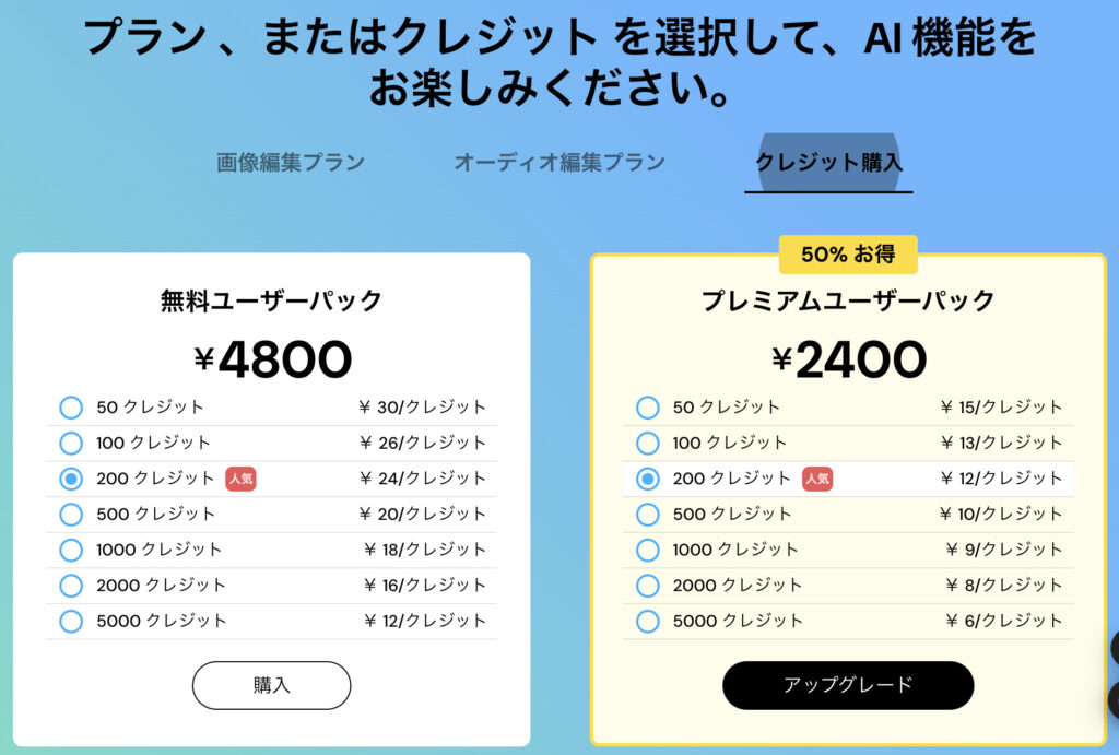 - クレジット数が増える、もしくはAI機能の制限が緩和される