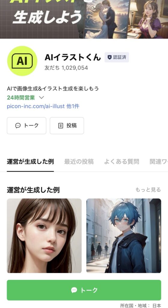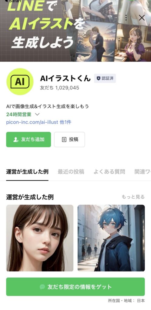 - LINEで「AIイラストくん」を検索して、公式アカウントを友だち追加