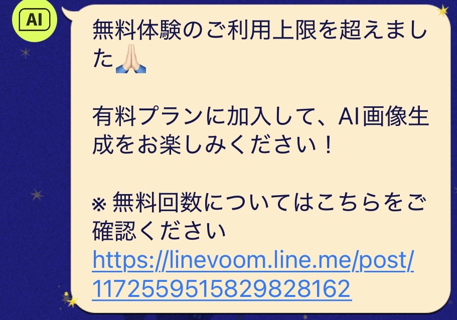 この表示は、無料体験の生成回数(枚数)の上限に到達したサインです。