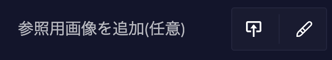 - 参照用画像を追加(任意):画像をアップして雰囲気・構図・色味などを寄せるための枠(↑(アップロード):参照画像を追加 ✎(ペン):参照画像に指示を書き込み(対応時))