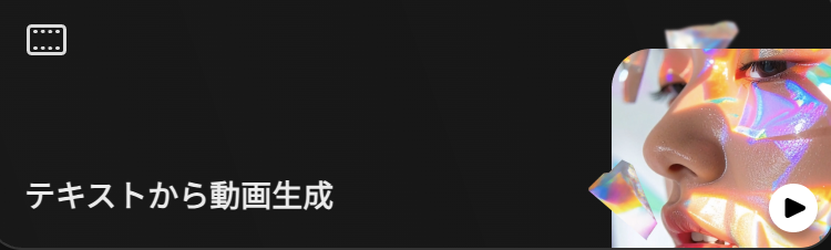 Text to Videoは、プロンプト(テキスト)を入力するだけで動画を生成できる機能です。