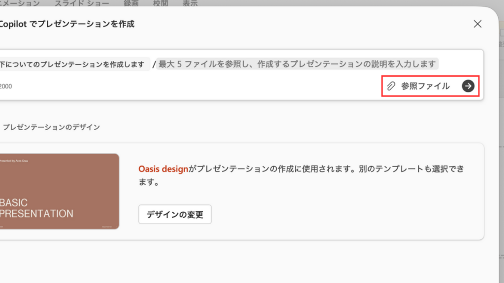 この際、参考資料として用いることが出来るファイルはOneDrive上のファイルであるため、その点は注意が必要です。