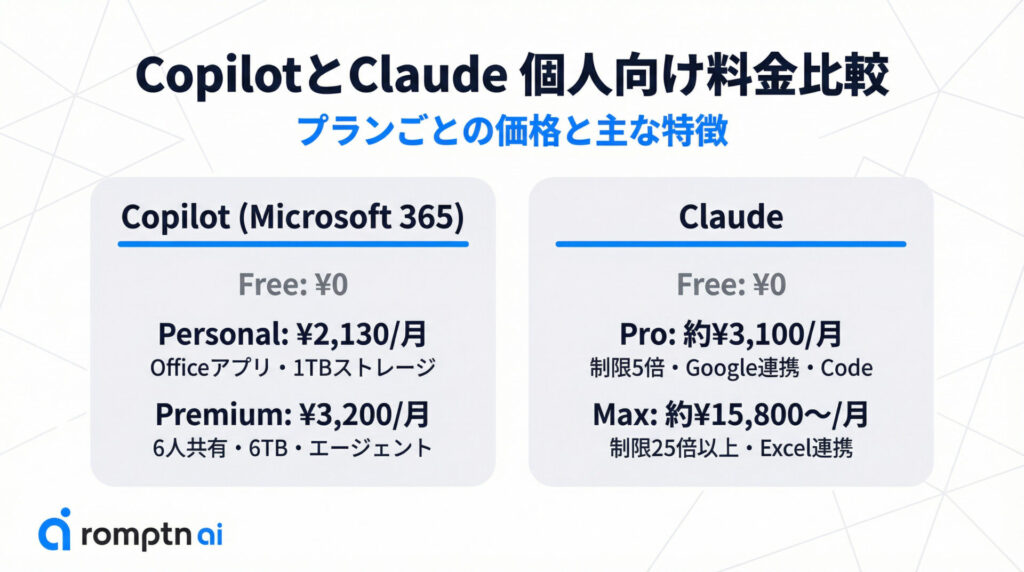 - 個人利用は画像生成やOffice製品の利用が少ないならClaudeがおすすめ
