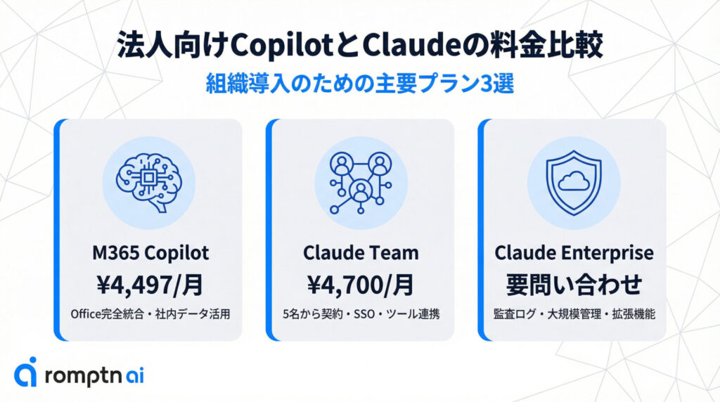・法人利用はM365中心ならCopilot、ツール分散型ならClaudeの契約がおすすめ