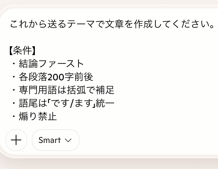 Claudeに条件を入力する際は以下のようなテンプレートを用意しておくことがおすすめです。