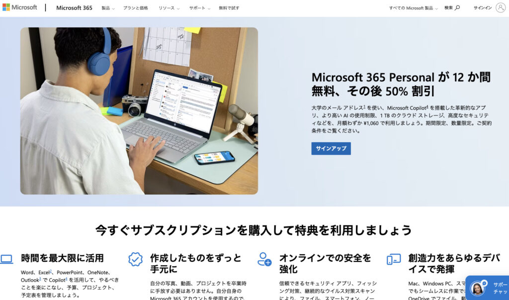 学割で使えるのは「Microsoft 365 Personal」というプラン