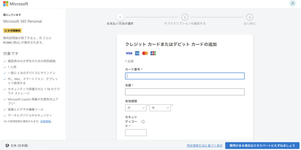 - Step3支払い情報と住所を入力