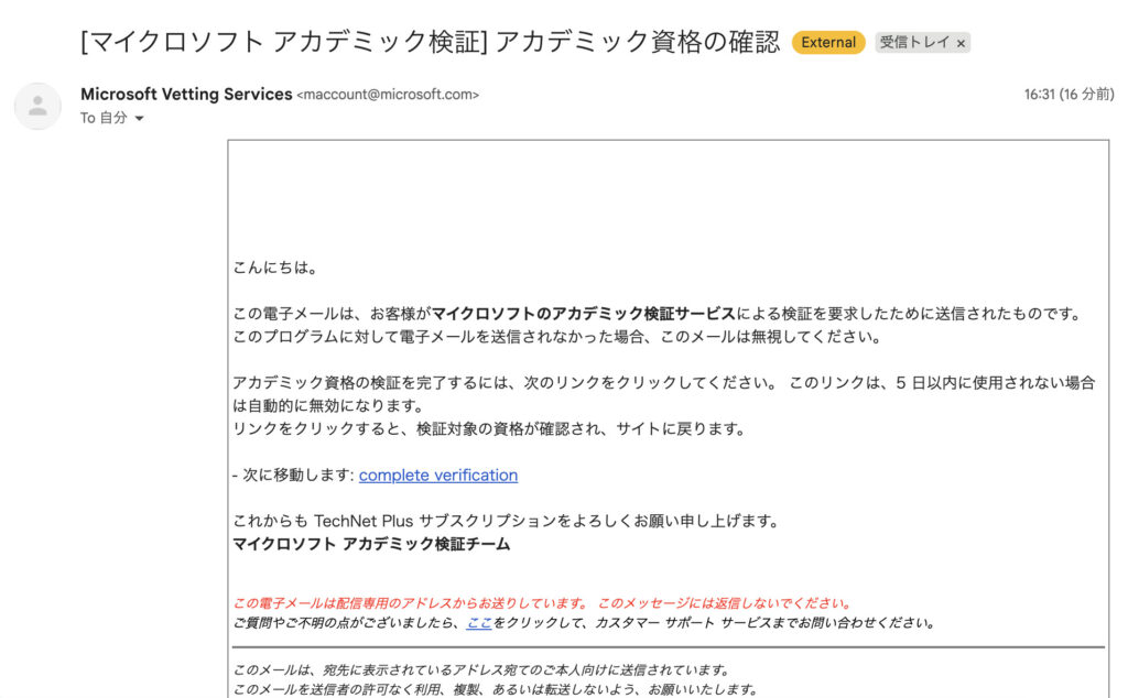 - Step5学生認証用のメールを確認する