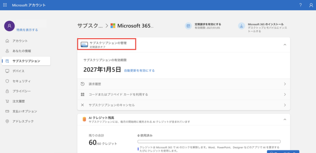 忘れてはならないのが、Copilotを無料で使用することができる期間は「12か月」であり、その後は自動で支払いがされてしまうという点です。