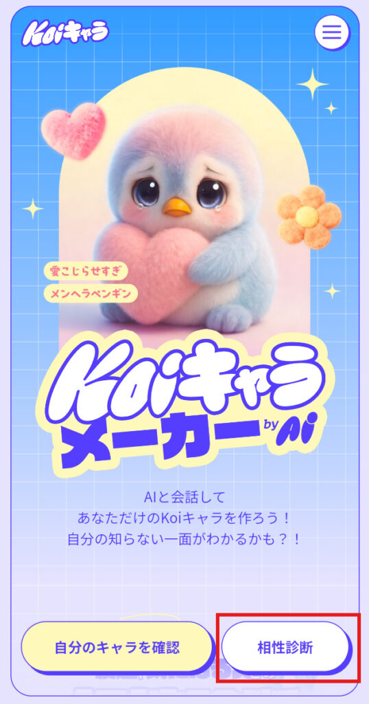 - STEP1Koiキャラメーカーにアクセスし、診断を始める。