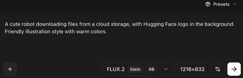 FLUX.2 kleinは、超高速な画像生成を特徴とするFLUX.2シリーズの軽量モデルです。