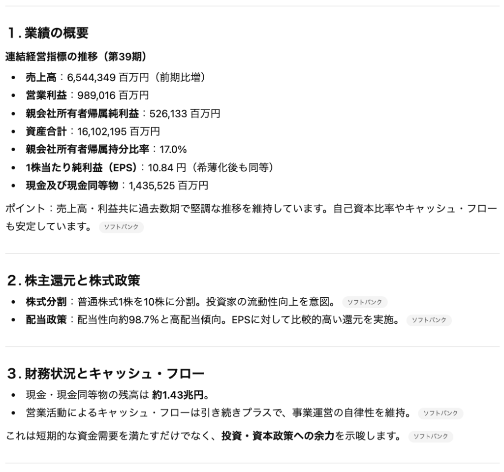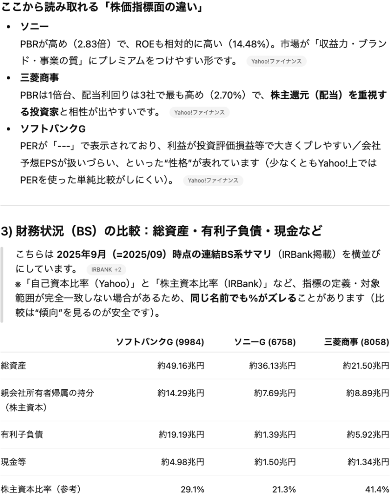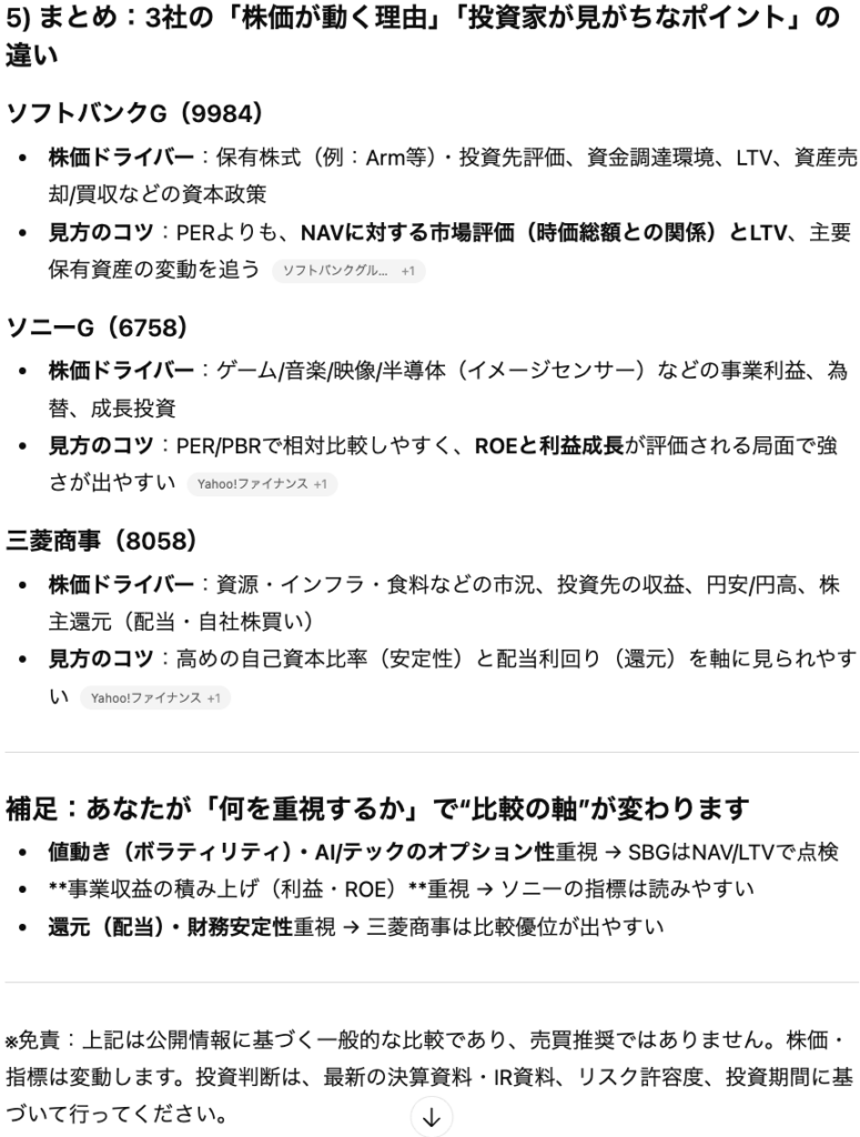 • ChatGPTは決算資料の要約やリアルタイムの株価・財務指標の比較が可能で、銘柄分析の時間を大幅に短縮できる