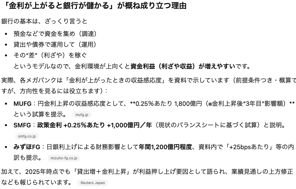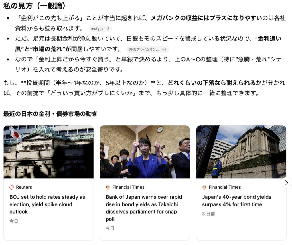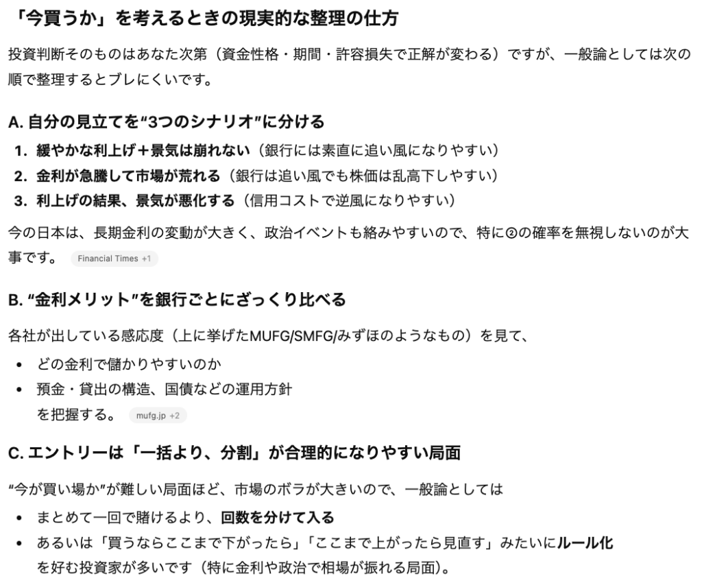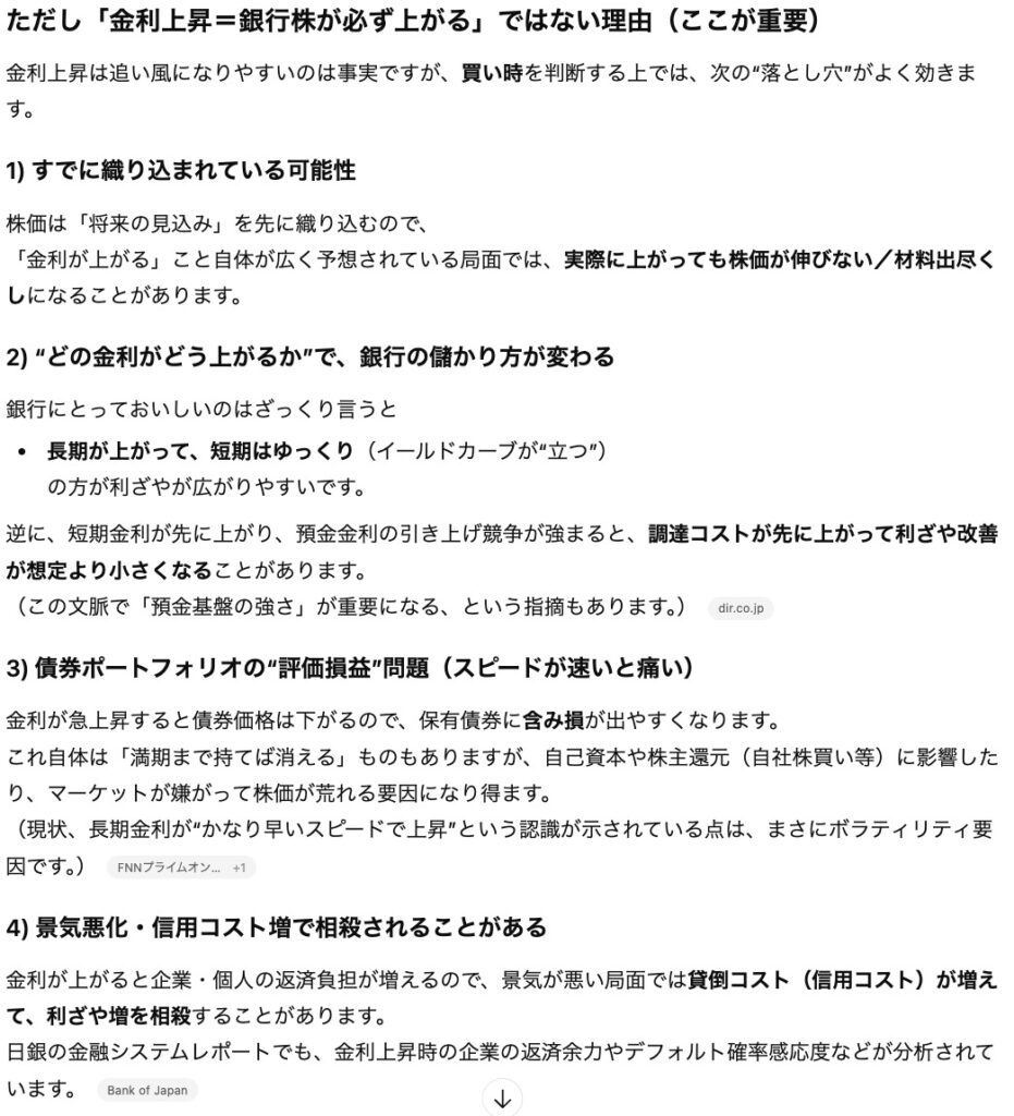 Q. 金利がこの先も上がるならメガバンク株を今買うべきかと思うのですがどう思いますか?