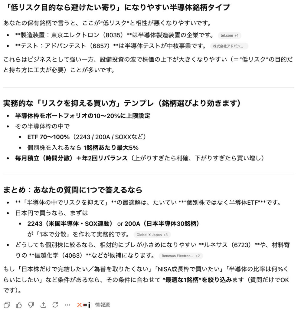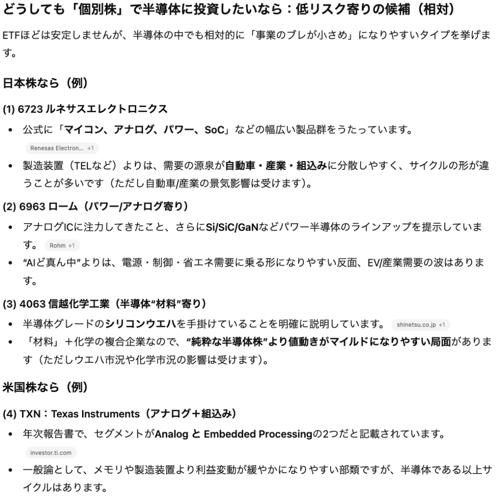 Q. 半導体銘柄の中でリスクを抑えて投資するならどの銘柄を買うべきですか?