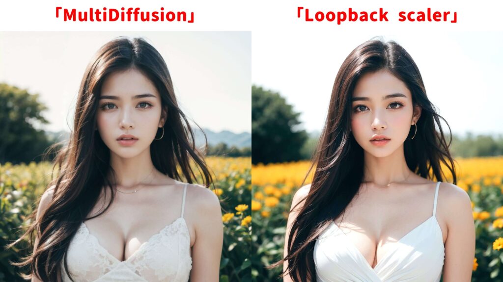 生成された画像をMultiDiffusionで生成した画像と比較してみます。