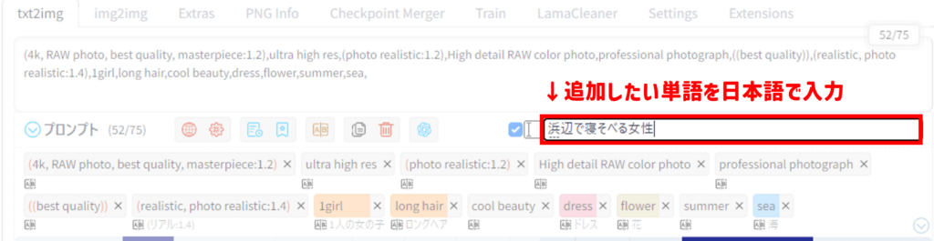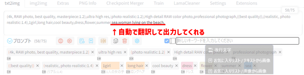 すると、最後尾に自動翻訳されたプロンプトが追加されます!