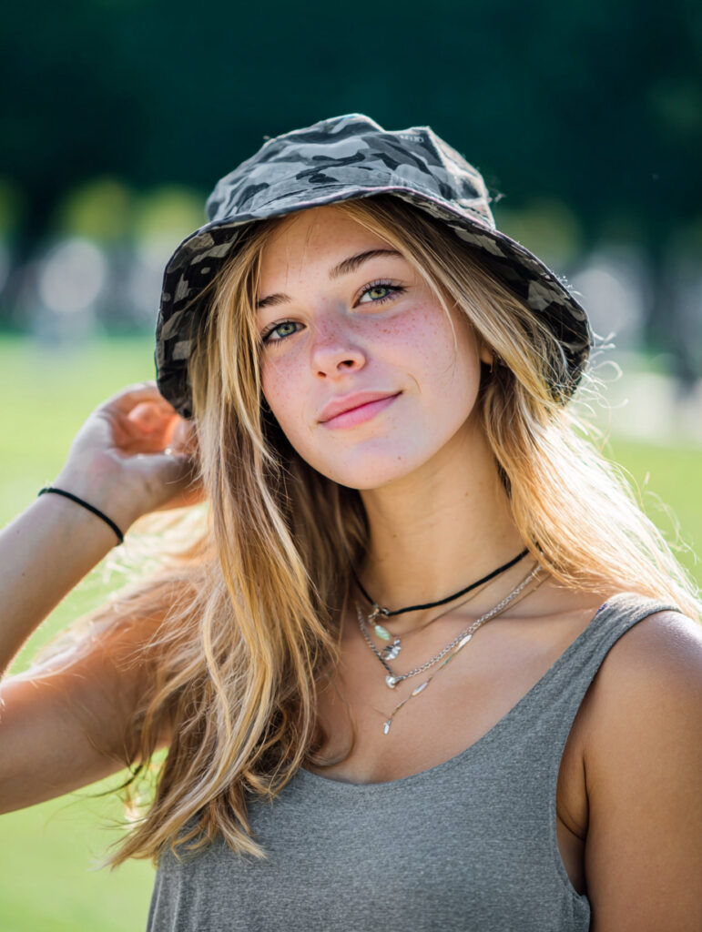 • 斜めに傾けて被る(例:”1girl, baseball cap tilted, fashionable”)