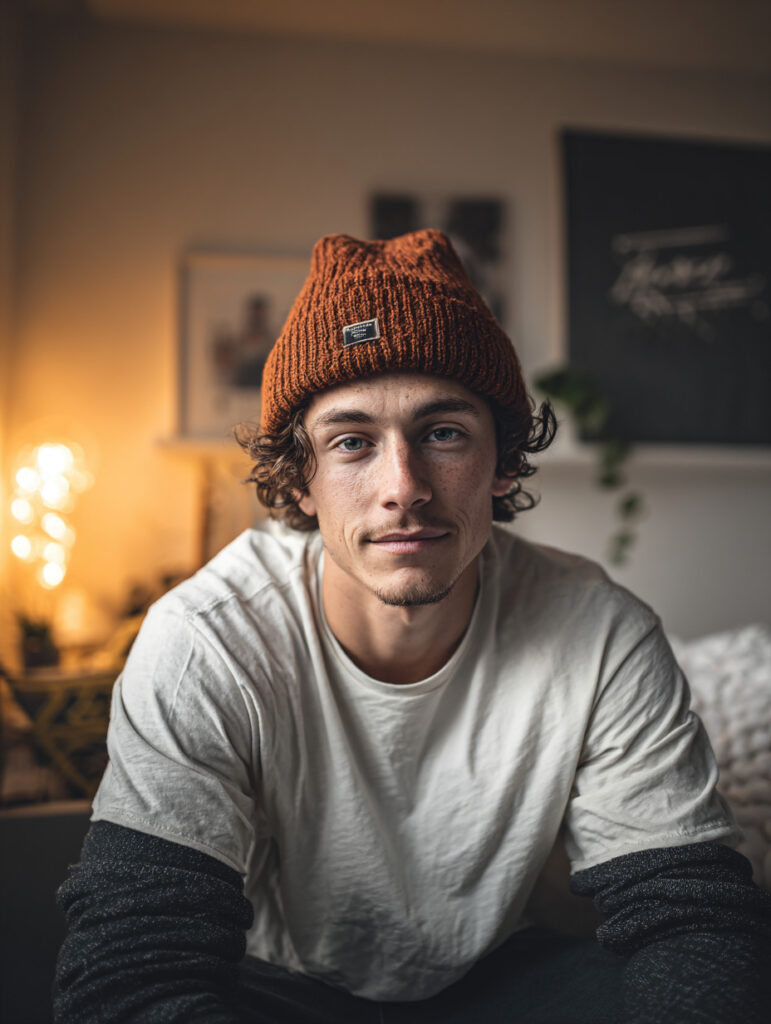 服装・雰囲気・背景を最低限セットにすることで、帽子が浮かず、自然な一枚に仕上がります。