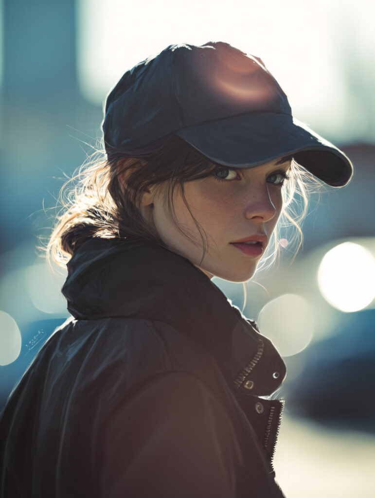 • 深く被って顔に影を作る(例:”1girl, cap pulled low, mysterious mood”)