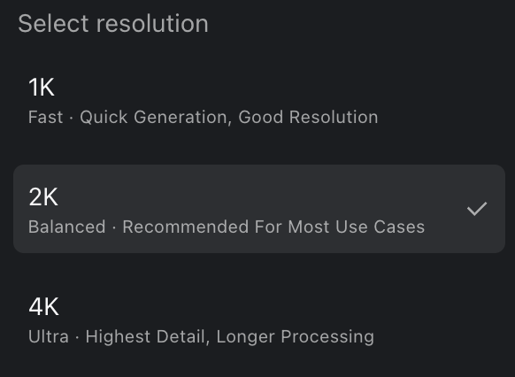 解像度(Select resolution)は、生成スピードとディテールのバランスを決める設定です。