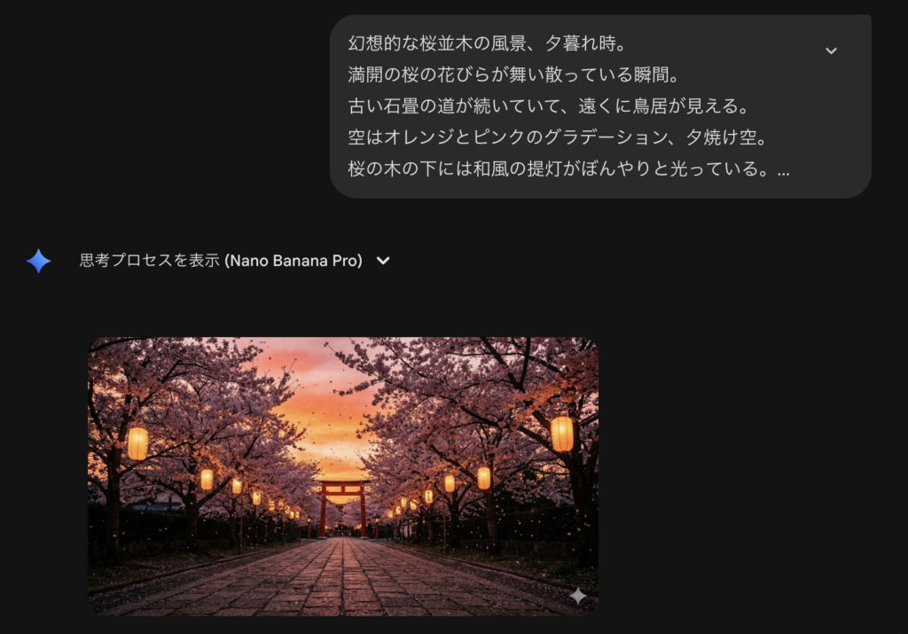 まずは、動画にしたいシーンの“元絵”をNano Banana Proで用意します。