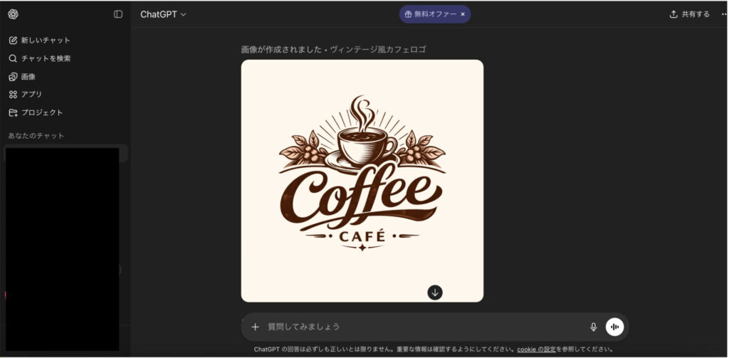 ChatGPTを使ったロゴ作成は、チャット画面にプロンプトを入力するだけです。おすすめの活用法は、「アイコン部分のみをChatGPTで生成し、文字はCanvaで追加する」ハイブリッド方式です。これなら、オリジナリティと実用性を両立できます。