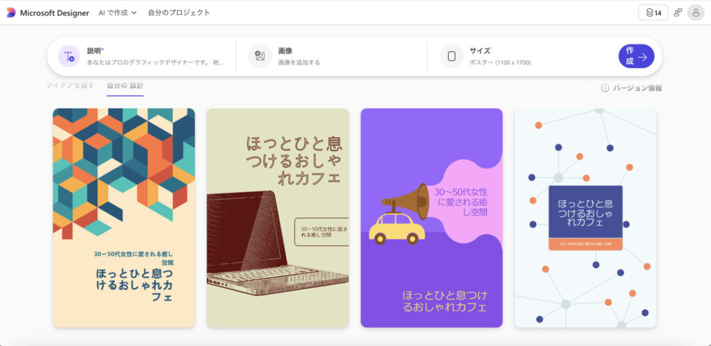 Microsoft Designerも、テキスト入力だけでデザインを生成してくれるツールのひとつ。