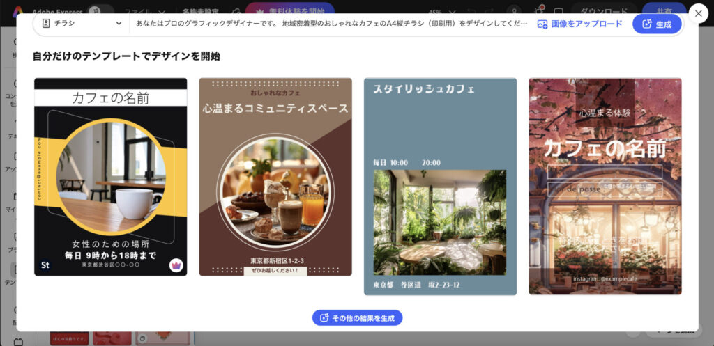 Adobe Expressは、テキストを入力するけでAIがポスターのテンプレートを作成します。