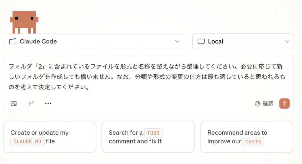 そこで、この整理をClaude Codeに簡単に指示して実行してもらいましょう。