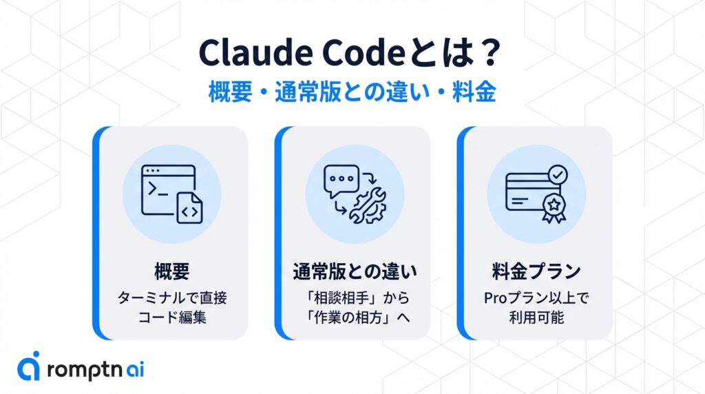 ・Claude Codeは、チャットでの相談だけでなくファイルの編集やコマンド実行までを代行してくれる「実行型AI」である