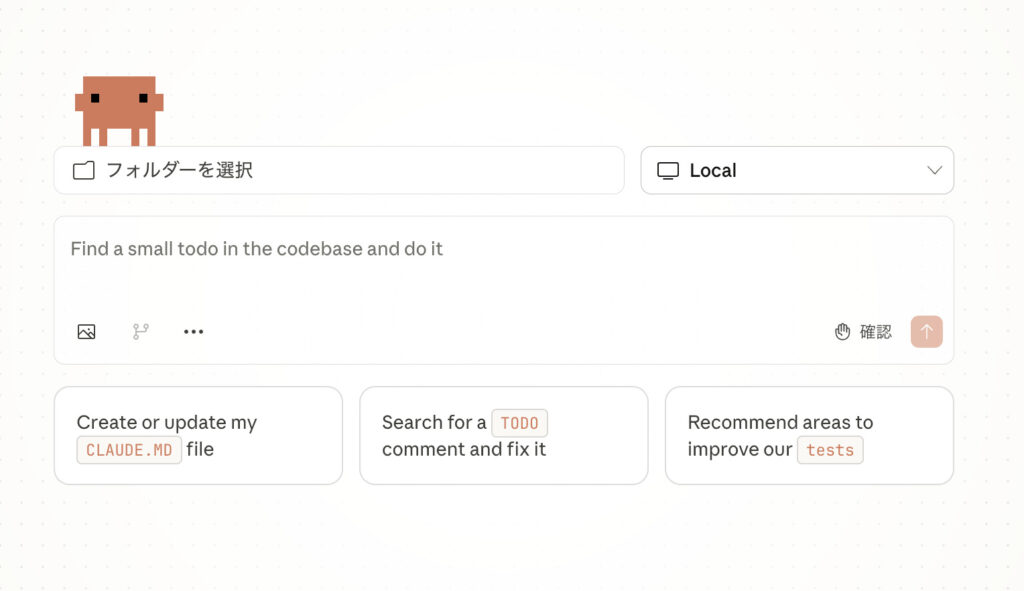 Claude Codeを開くと以下のような画面が表示されます。