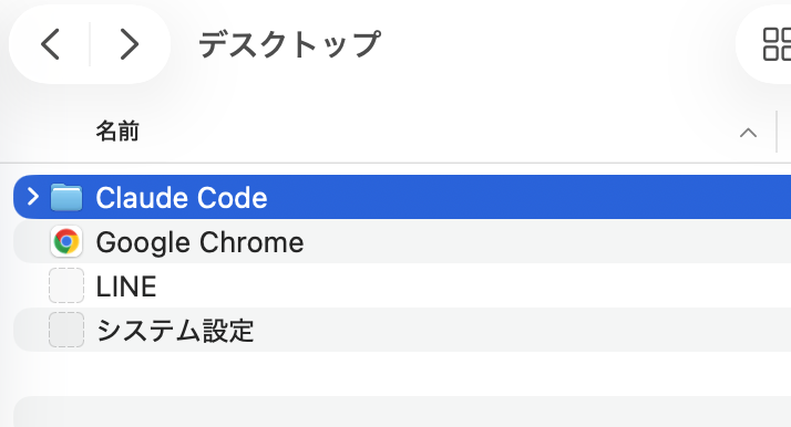 例えば今回は「デスクトップ」上に「Claude Code」というフォルダを作成し、そこでClaude Codeを用いた作業を行うようにしていました。
