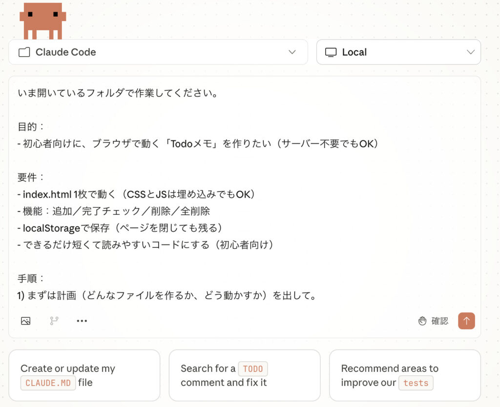 - 初心者向けに、ブラウザで動く「Todoメモ」を作りたい(サーバー不要でもOK)