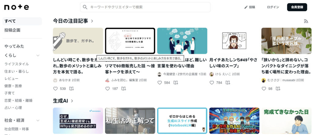 noteは2025年にGoogleとの資本業務提携を発表し、AI時代を前提とした開発を現在も進めています。これにより、検索・AI要約・レコメンドとの相性が強化され、「AIに拾われやすい個人コンテンツ」の土台が整いました。note公式によると、収益を得ているクリエイター数は前年比150%以上に増加しています。