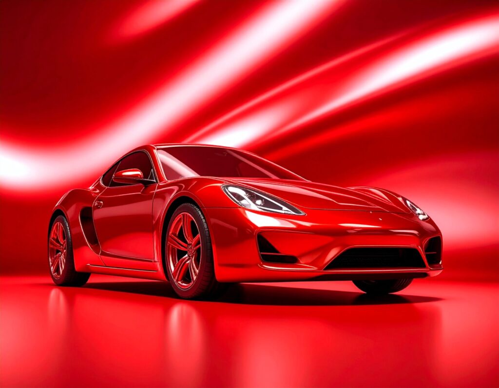 metallic red paint, glossy finish, keep reflections and highlights, photorealistic