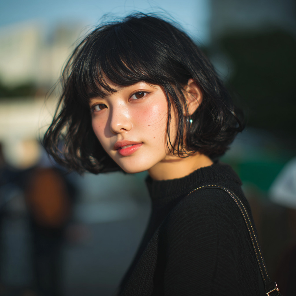 photorealistic Japanese woman, keep same face, same expression, same lighting, change hair color to soft pastel pink, natural hair texture, realistic strands, detailed hair, shallow depth of field