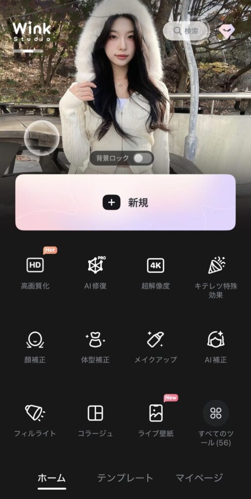 Winkは、AIによる高画質化と人物補正に強い動画編集アプリです。