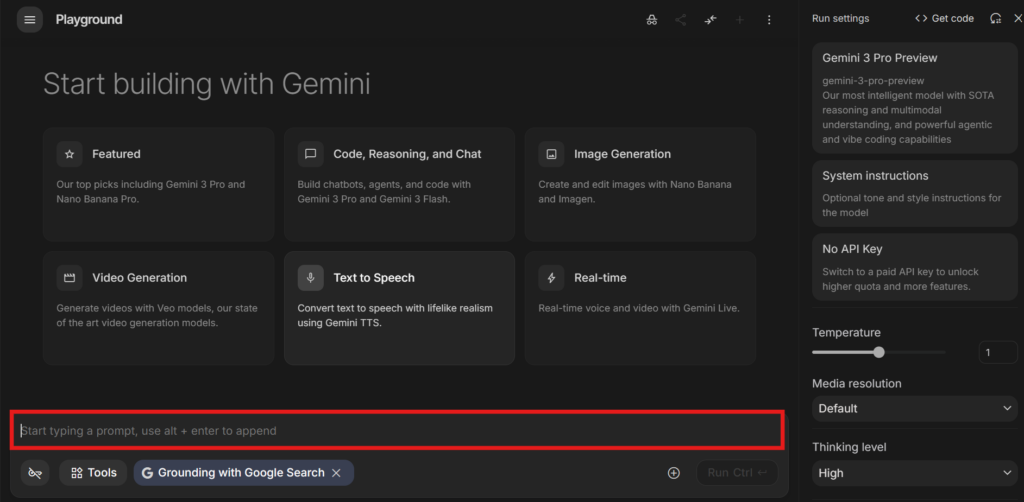 Google AI Studioの最大のメリットは、開発中の最新モデルや、有料プラン相当の高性能モデル(Gemini 1.5 Proなど)を無料で使える点です(※APIの無料枠の範囲内)。