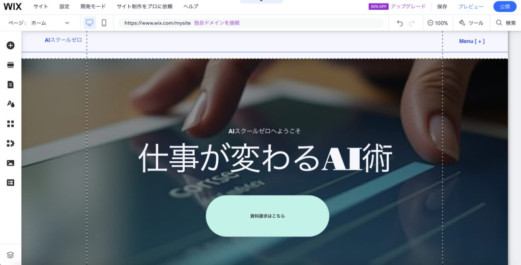 無料プランでも公開できますが、Wixの広告が表示されます。「イベント告知など一時的なLPを低コストで作る」といったまずは形にしたい小規模事業者に最適です。