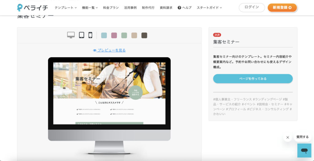 ペライチは、月々1,480円(税抜)〜・サーバー維持費0円でホームページの作成・運用ができる国産ツールです。