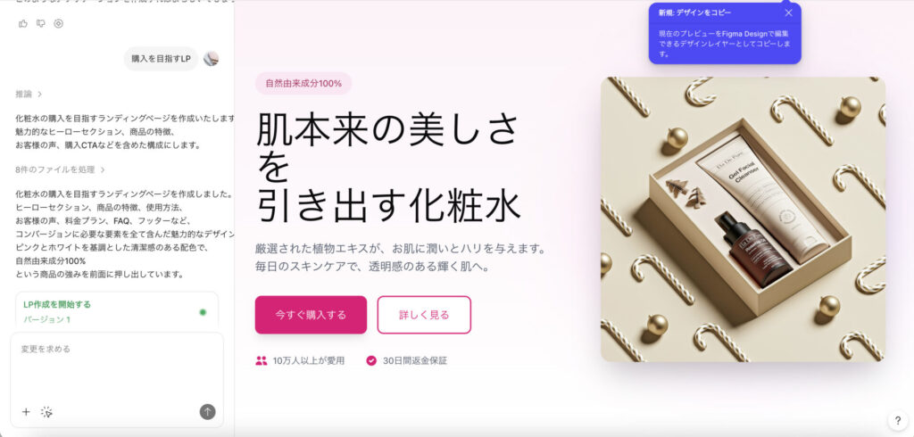 デザインツールのAI機能を使えば、CTAボタンの色や配置を変えたパターンも作成可能です。ABテストのサイクルを高速化することで、PDCAを素早く回し、コンバージョン率を継続的に改善できます。