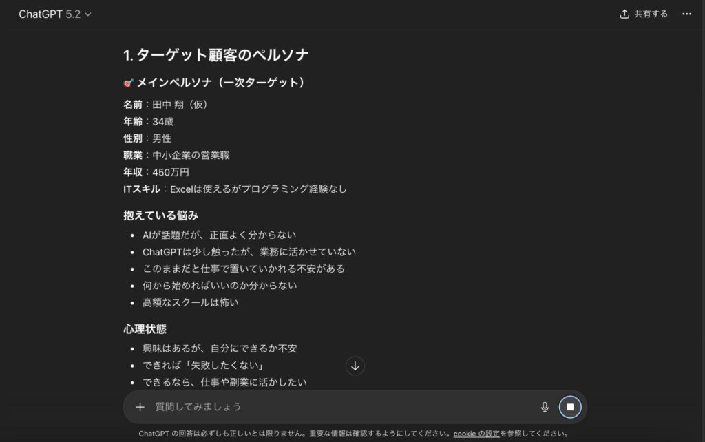 まず、ChatGPTを使ってLP制作の方向性を整理します。