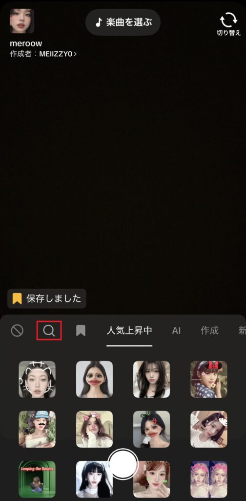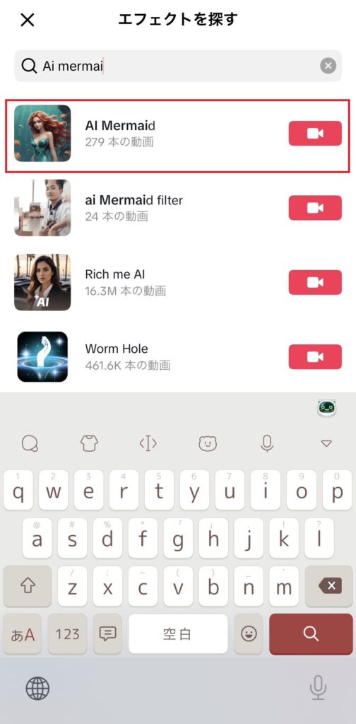 • アプリを変更してから、エフェクト検索からマーメイドエフェクトを探す