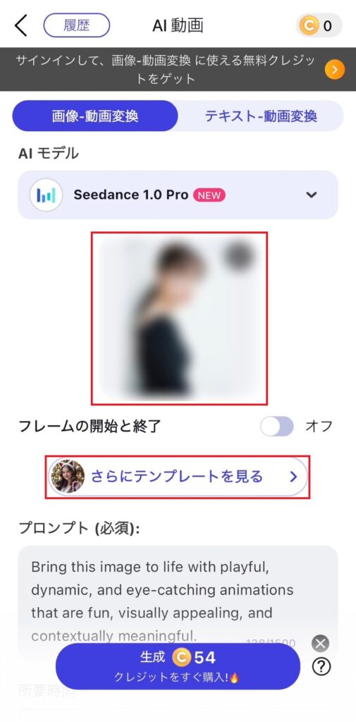 画像をダウンロードして、「さらにテンプレートを見る」を押す