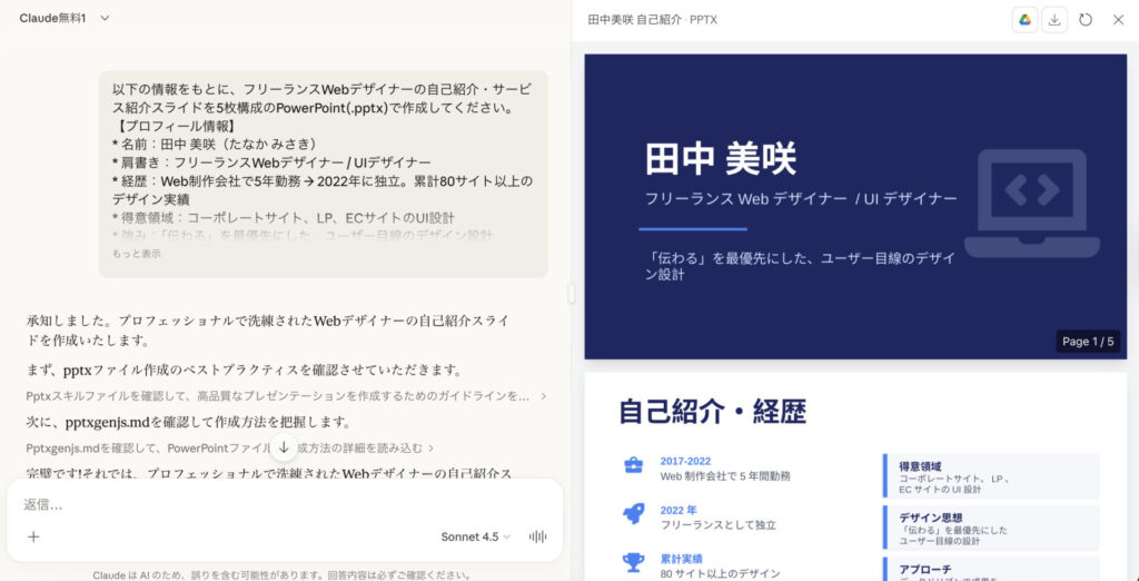 無料版(Sonnet 4.5)で作成したパワポ資料