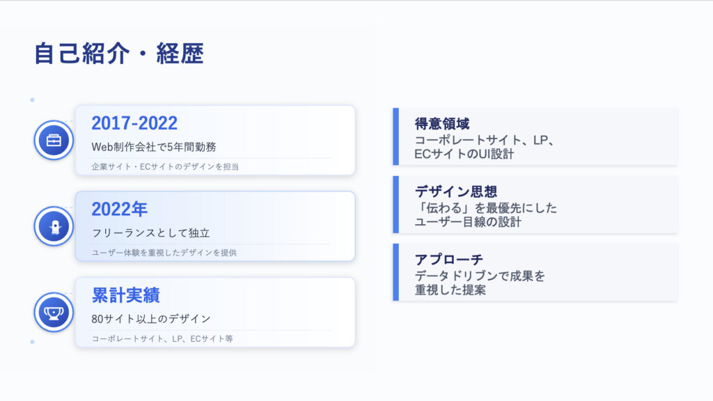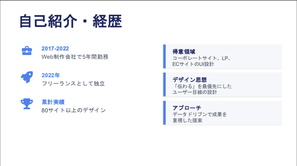 • 強み:「伝わる」を最優先にした、ユーザー目線のデザイン設計