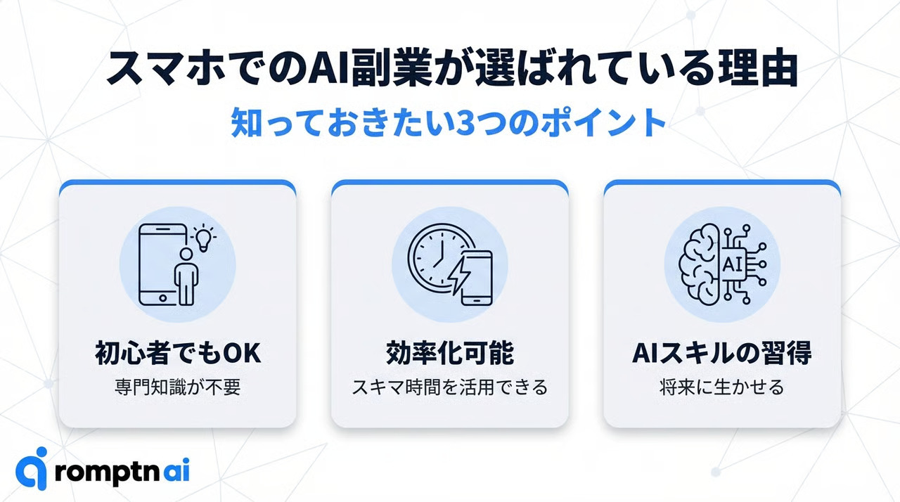・スマホでのAI副業では特別なスキルは不要であり、初心者でも安心して始めることができる。